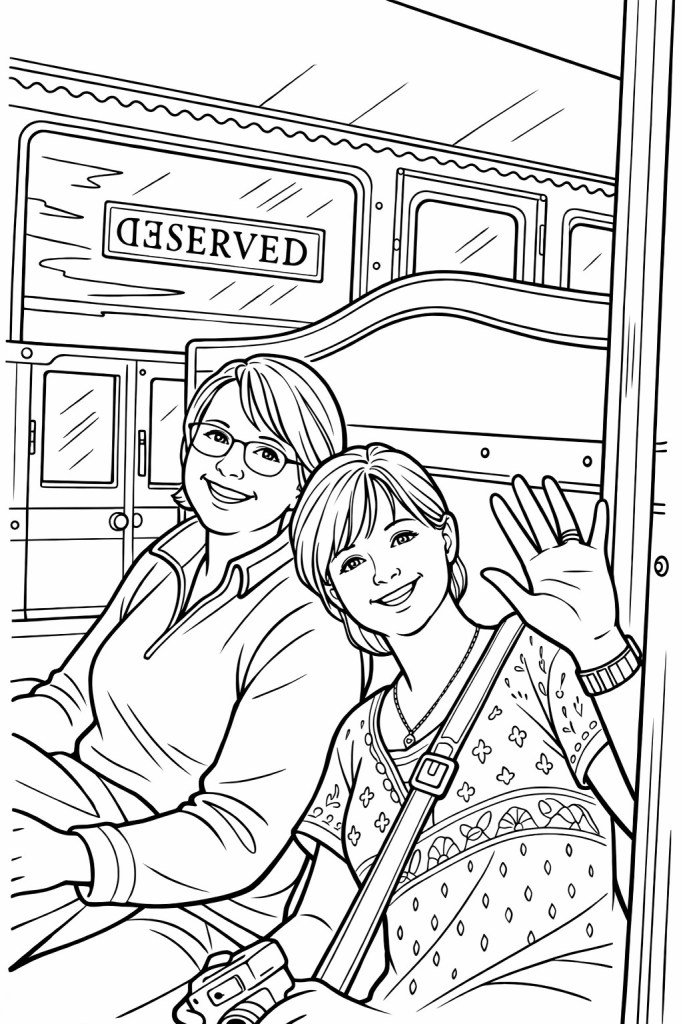 As I came here to pray, I needed a picture to connect to, so I chose the one that moved my heart, the one up there. And its curious, I chose to create a children’s colouring book page, and there it is. The thought came to me…