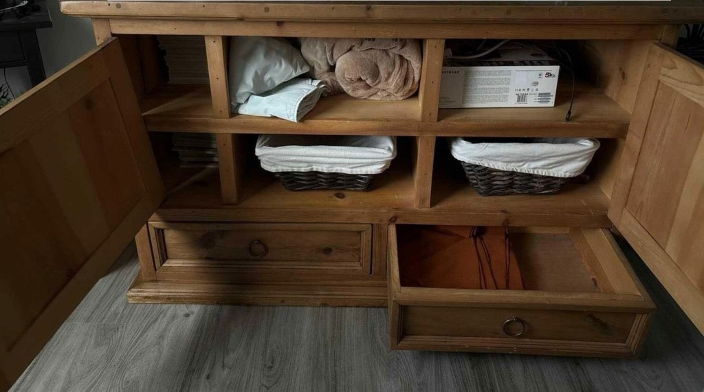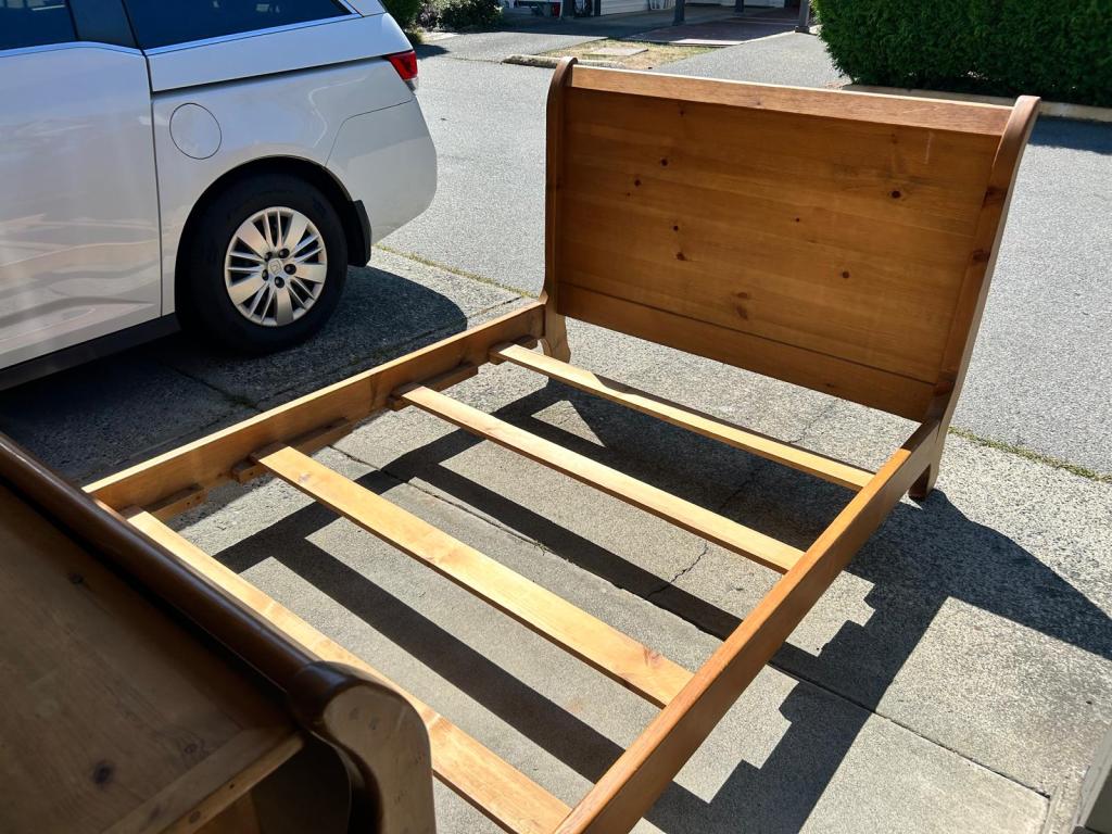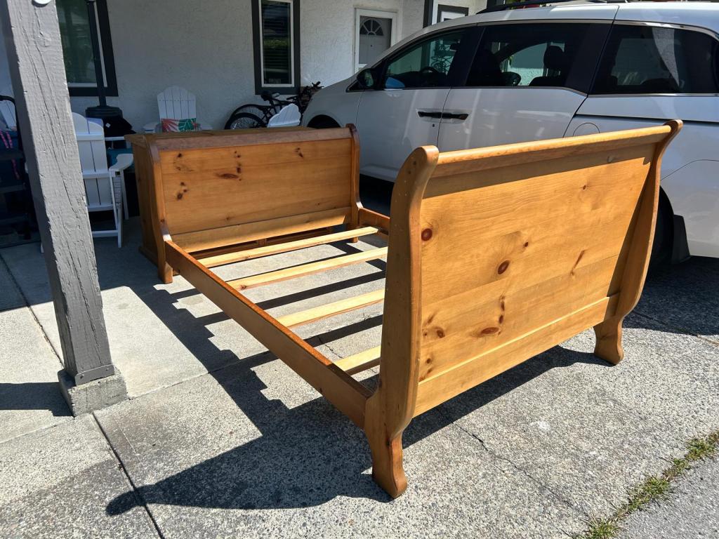 One the best finds, and the most recent, is the sleigh bed and the bureau for his clothing>
