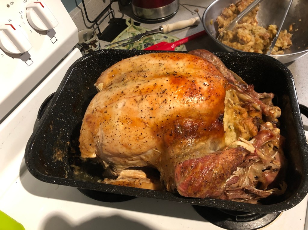 There is a swath of the public that does not like to allow the harvesting of the bones until its been placed at the centre of the table… this is understandable of course, and at times must be endured patiently. Once photo opportunities have been exhausted, and the meal is sufficiently underway, volunteer to start clearing the table for dessert… they become distracted by their own hopes for pie, and allow the bird carcass to be removed to the kitchen where the de-boning process can take place.