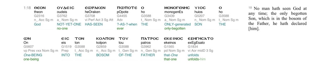 18 No one has seen God at any time. The only begotten Son, who is in the bosom of the Father, He has declared Him.