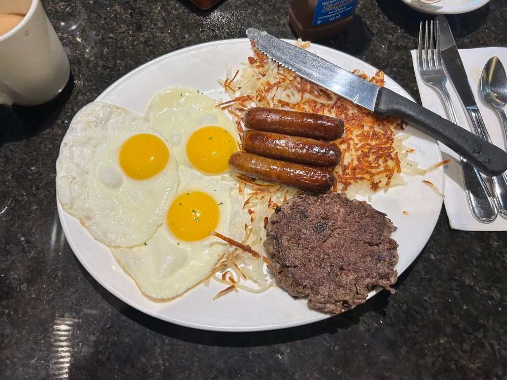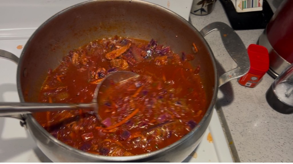 - stew beef, Italian sausage, mushrooms, celery, onions, carrots, broccoli, red and green bell peppers, potatoes, cheese, gravy, seasonings